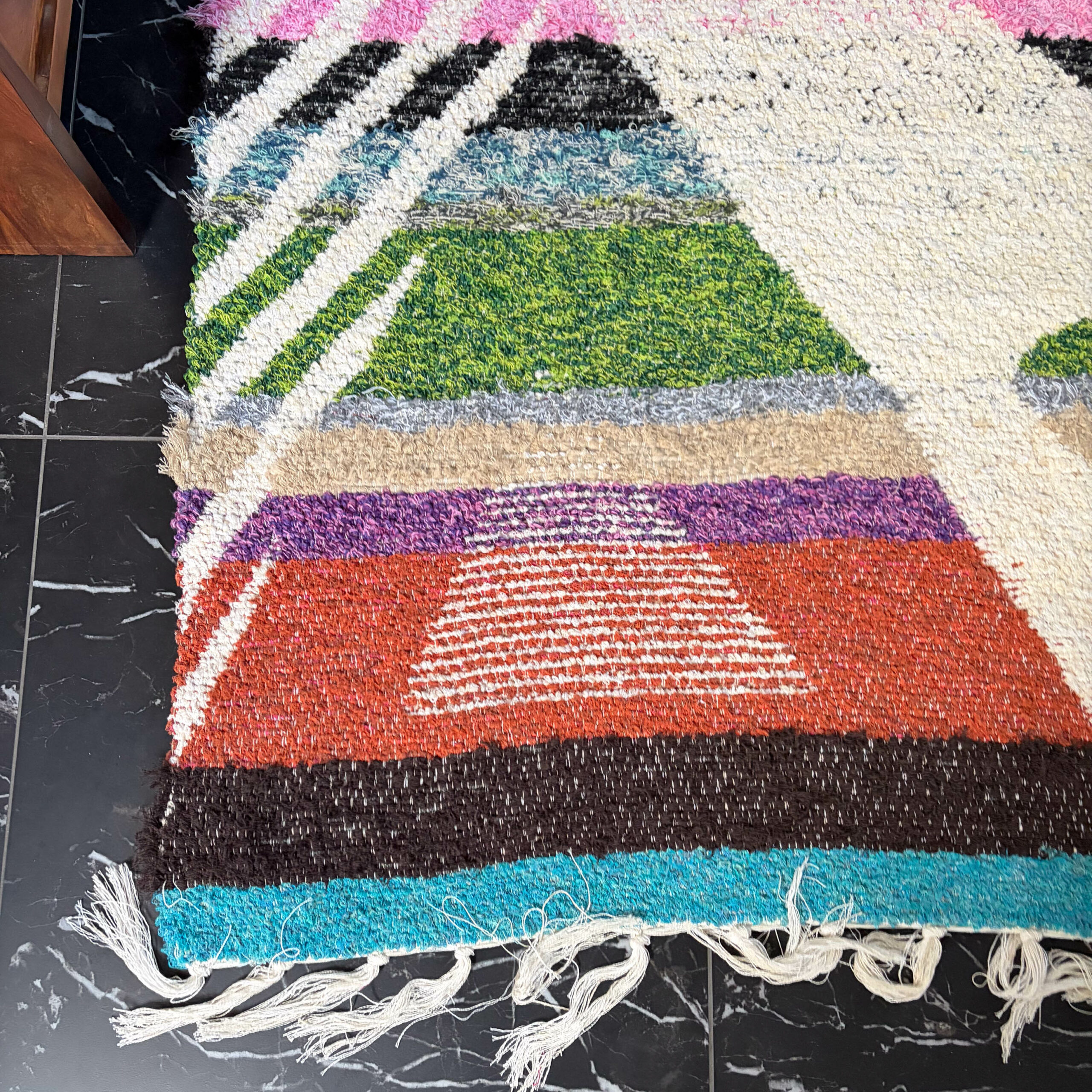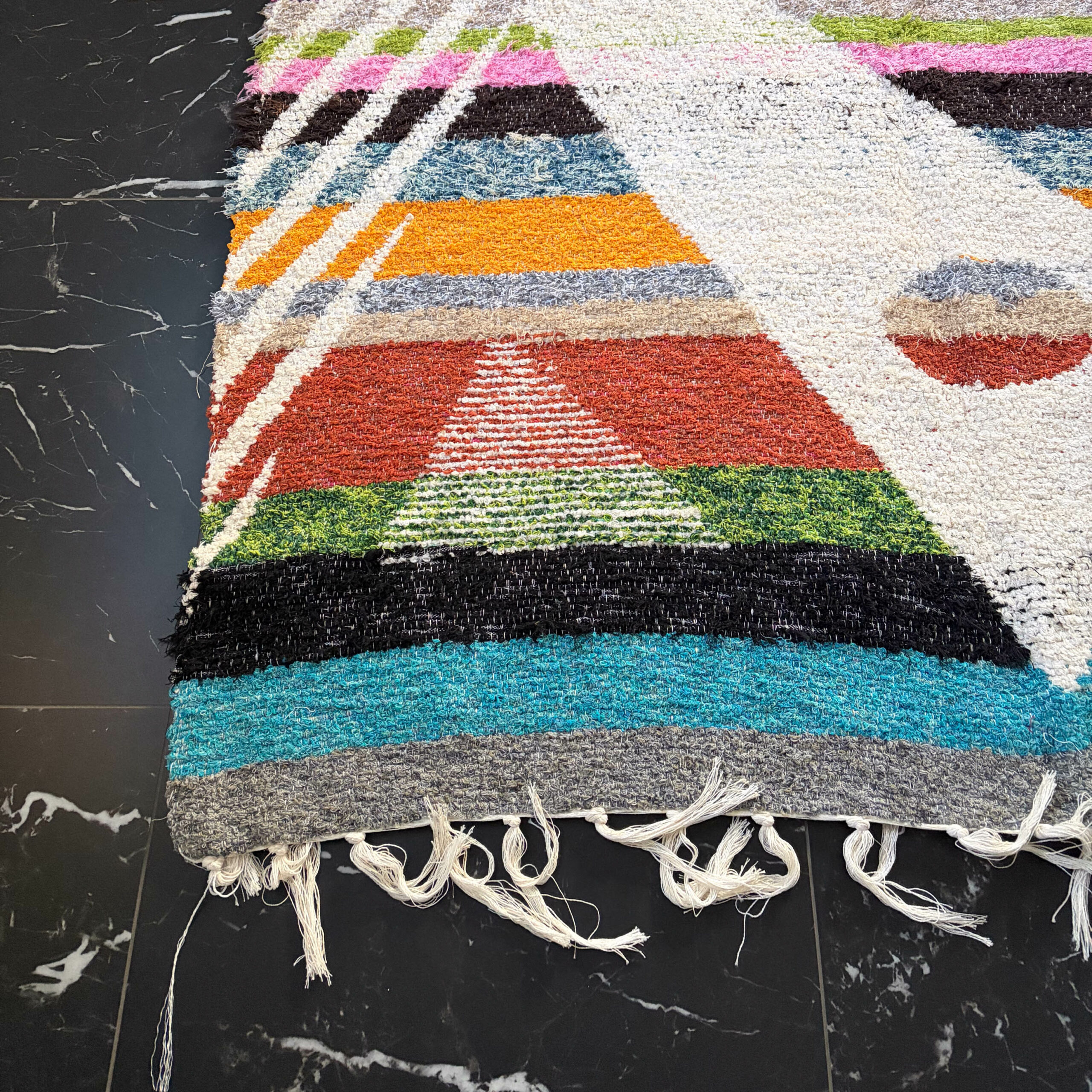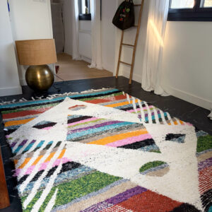 Tapis fabriqué à la main dans un petit village d’Andalousie à partir de coton recyclé.